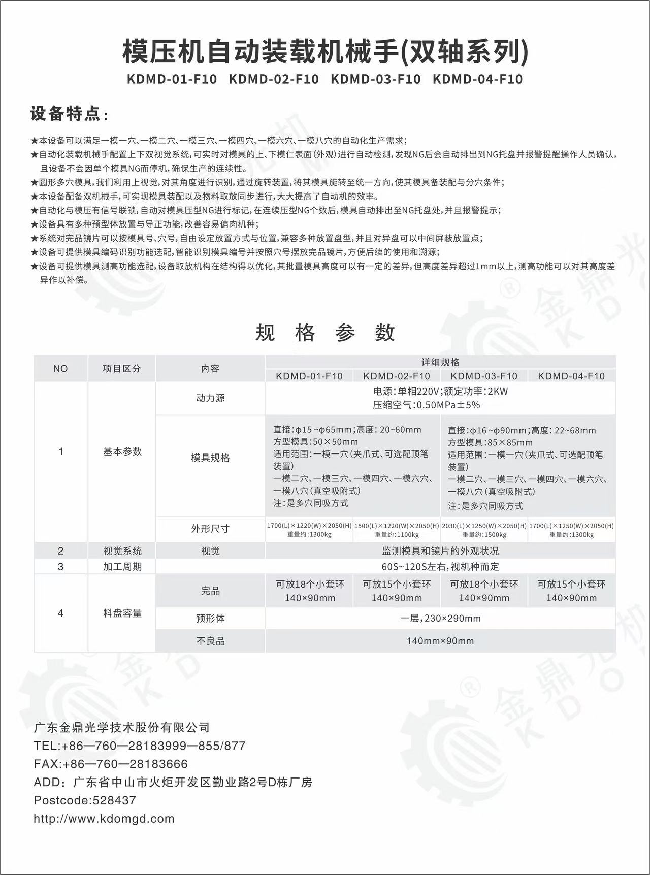 • 模壓機(jī)自動(dòng)裝載機(jī)械手(雙軸系列)-KDMD-01-F10 KDMD-02-F10 KDMD-03-F10 KDMD-04-F10