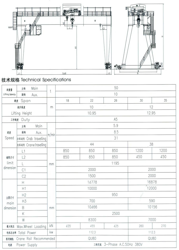 產(chǎn)品說明: 圖示為我公司為陽泉煤業(yè)集團制造的MG35/10T起重機